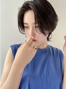 髪の赤みを消し、美しい透明感を実現できるアディクシーカラーのブルー系カラーで、暗めでも色味を楽しめるカラーリングに♡染めた後とは思えないような自然で柔らかな質感と艶感が、計算されたシルエットのショートスタイルにベストマッチ♡暗髪カラーをとことん楽しみたい甘さ控えめのおしゃれを楽しみたい方にオススメです♪
